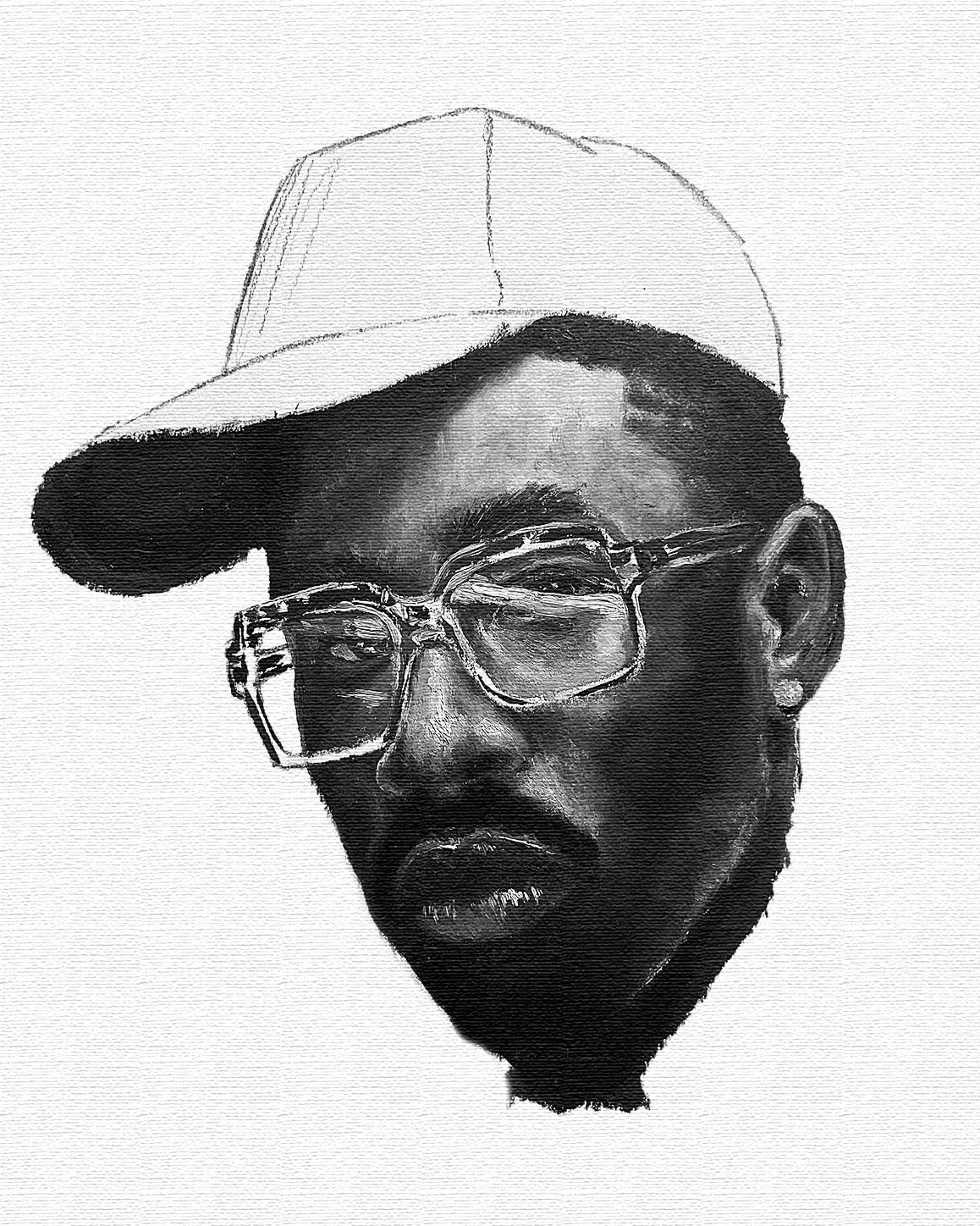 Mixed Media 2025. Oil-painted portrait of Tyler, the Creator, digitally scanned and integrated into a mixed media graphic for promotional use. Created for the upcoming album Don't Tap the Glass, the piece blends traditional painting techniques with contemporary design to reflect the album’s experimental and genre-blurring tone.